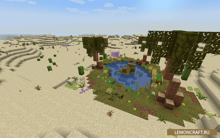 Мод на бесплодные острова Barren Isles немного обновит пустынные биомы, где вы сможете встретить динозавров носящих имя Дюнорапторы и на которых сможете прокатиться. Кроме этого в игре появятся структуры с рудами, оазис с маленьким озером и пальмами, а так же огромный храм.